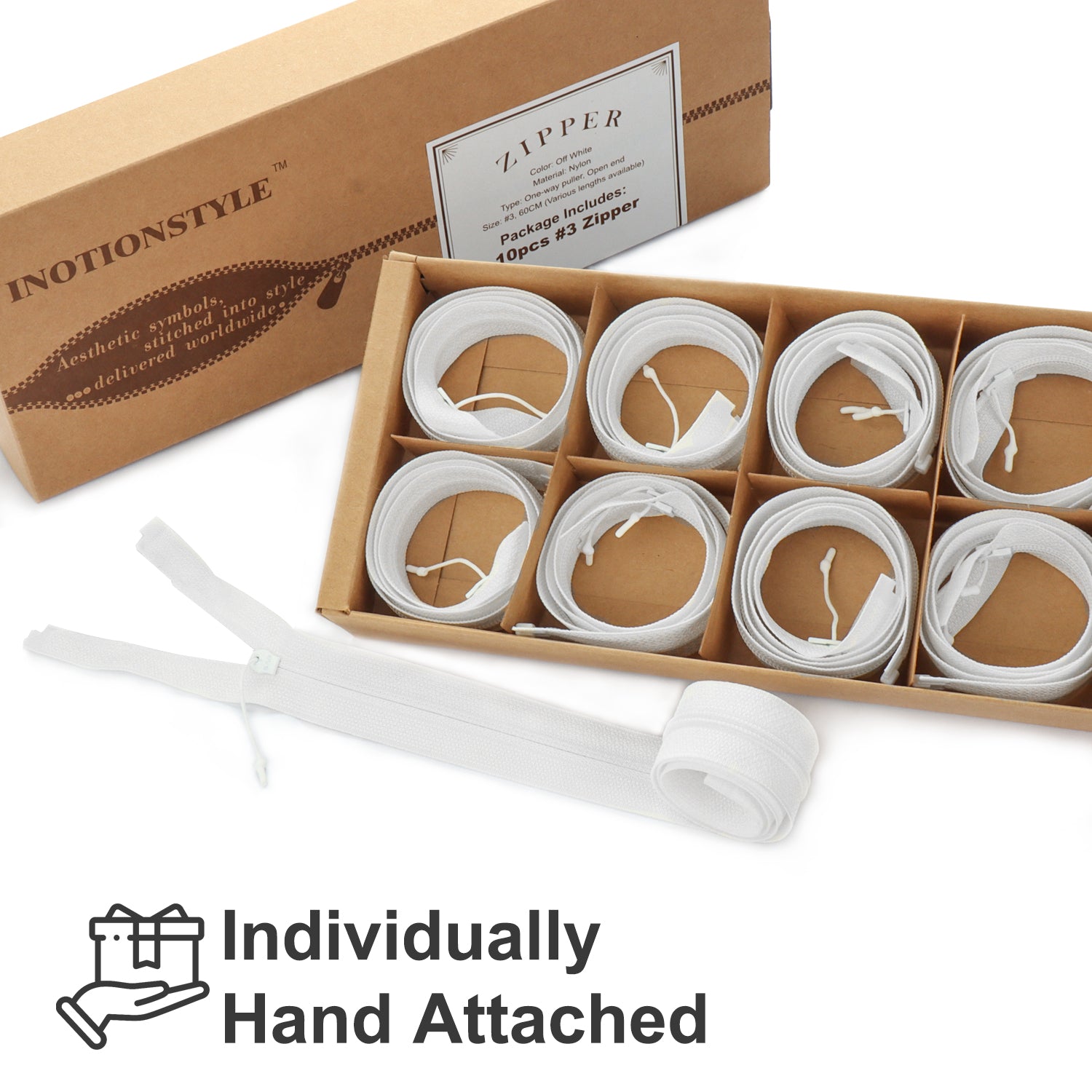Package Includes: #3 Off White Zipper