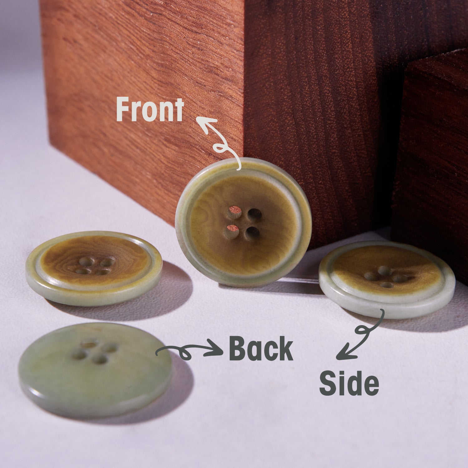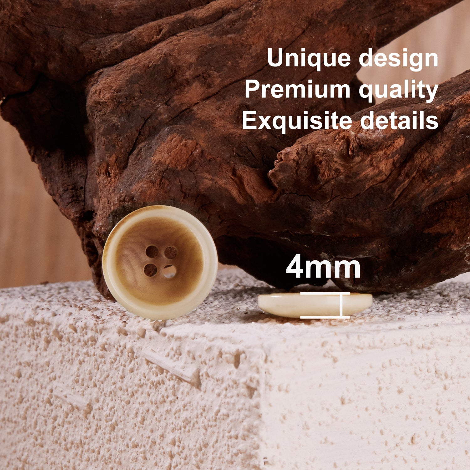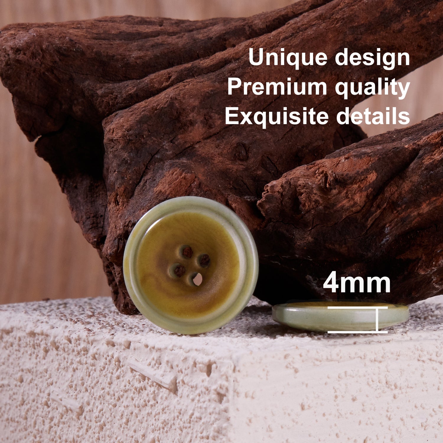 INOTIONSTYLE presents an exquisite collection of 4-hole gradient buttons, combining vintage charm with modern craftsmanship. Designed to complement sweaters, these buttons add a refined, elegant touch to your wardrobe. These beautifully crafted buttons feature a smooth, natural gradient effect, transitioning seamlessly from a deep, rich brown at the center to a soft beige or subtle olive around the edges. The slightly concave surface enhances their depth and texture, making them visually dynamic under different lighting.