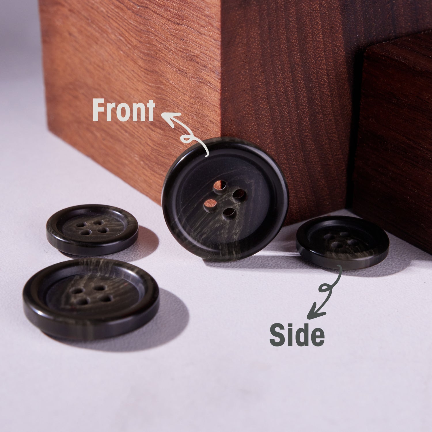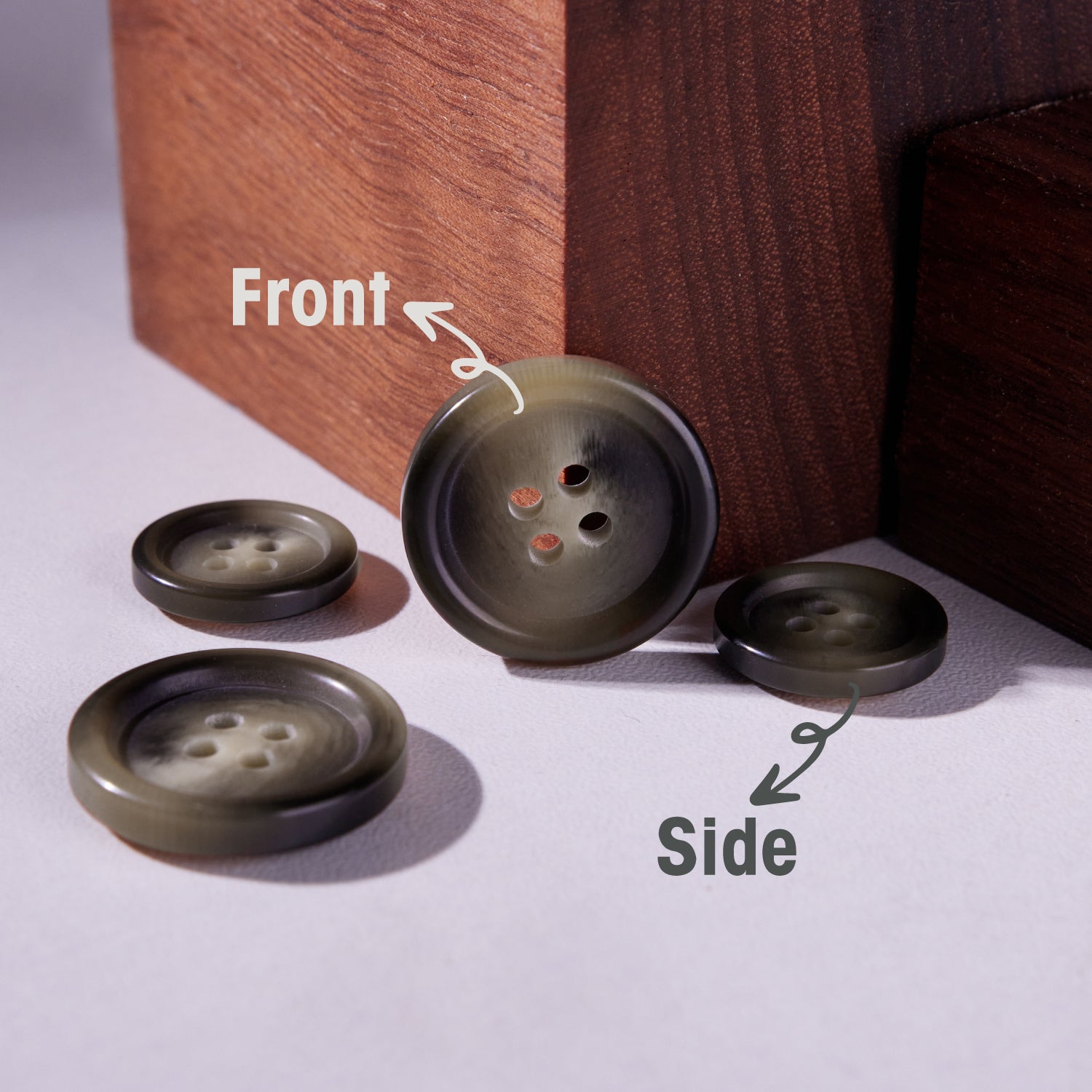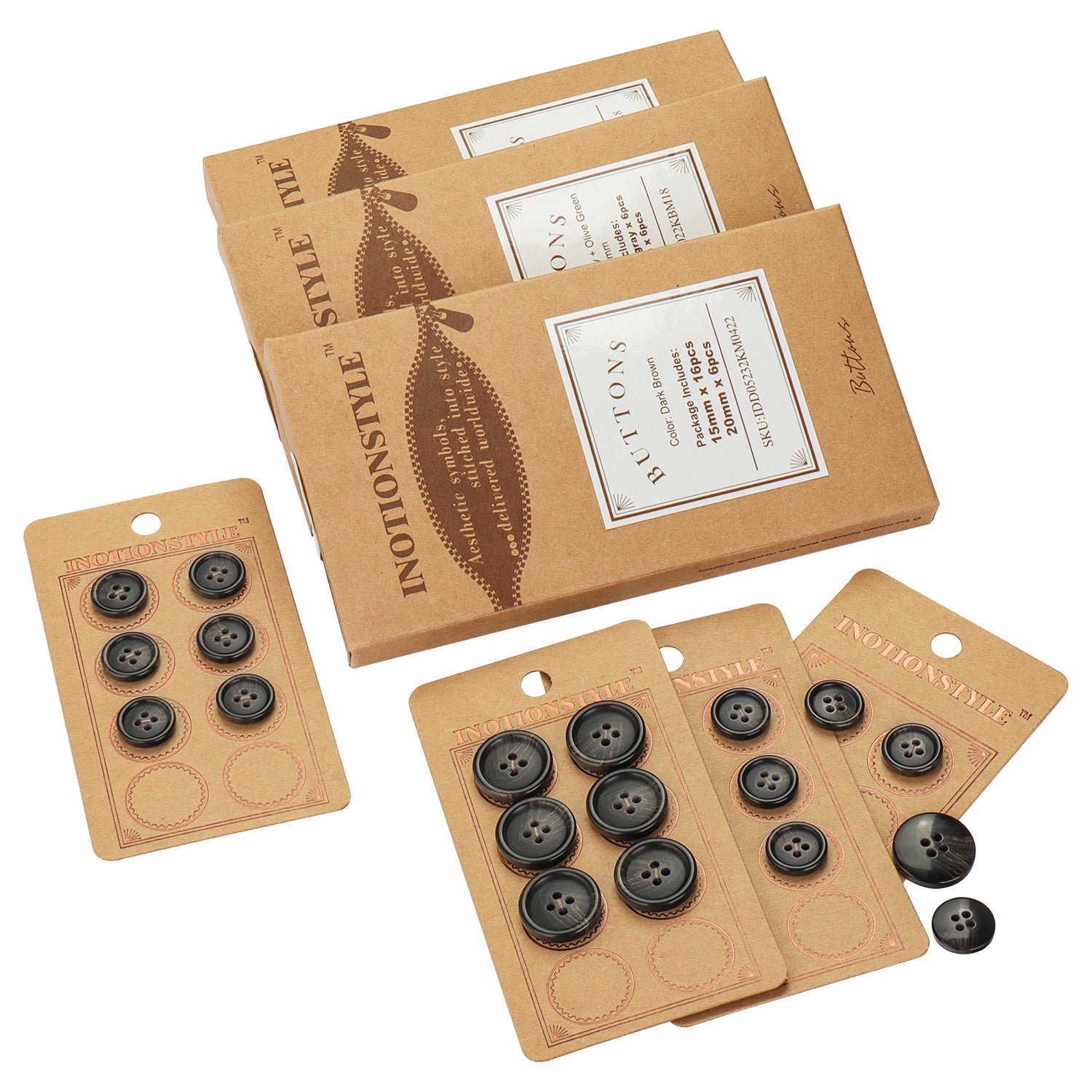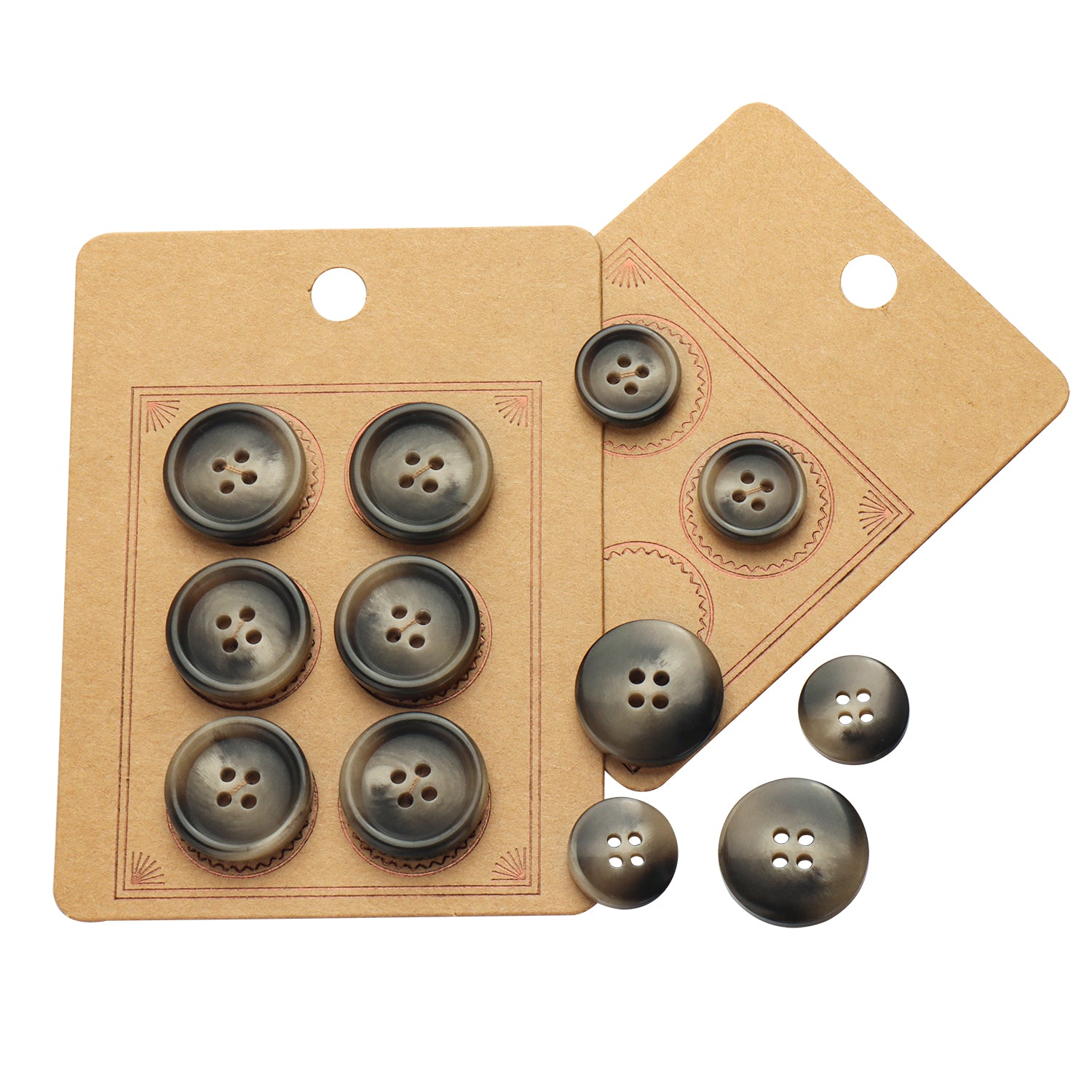 The INOTIONSTYLE Buttons Set is a premium collection of buttons, ideal for enhancing the look of blazers, suits. We offer custom design services, allowing you to personalize these buttons to match your unique style. With a smooth, glossy surface and a luxurious texture, these buttons feature a natural gradient in shades of light brown, dark brown, and black. Their elegant finish and polished edges add a refined touch to any garment, making them a standout feature in both professional and DIY projects.