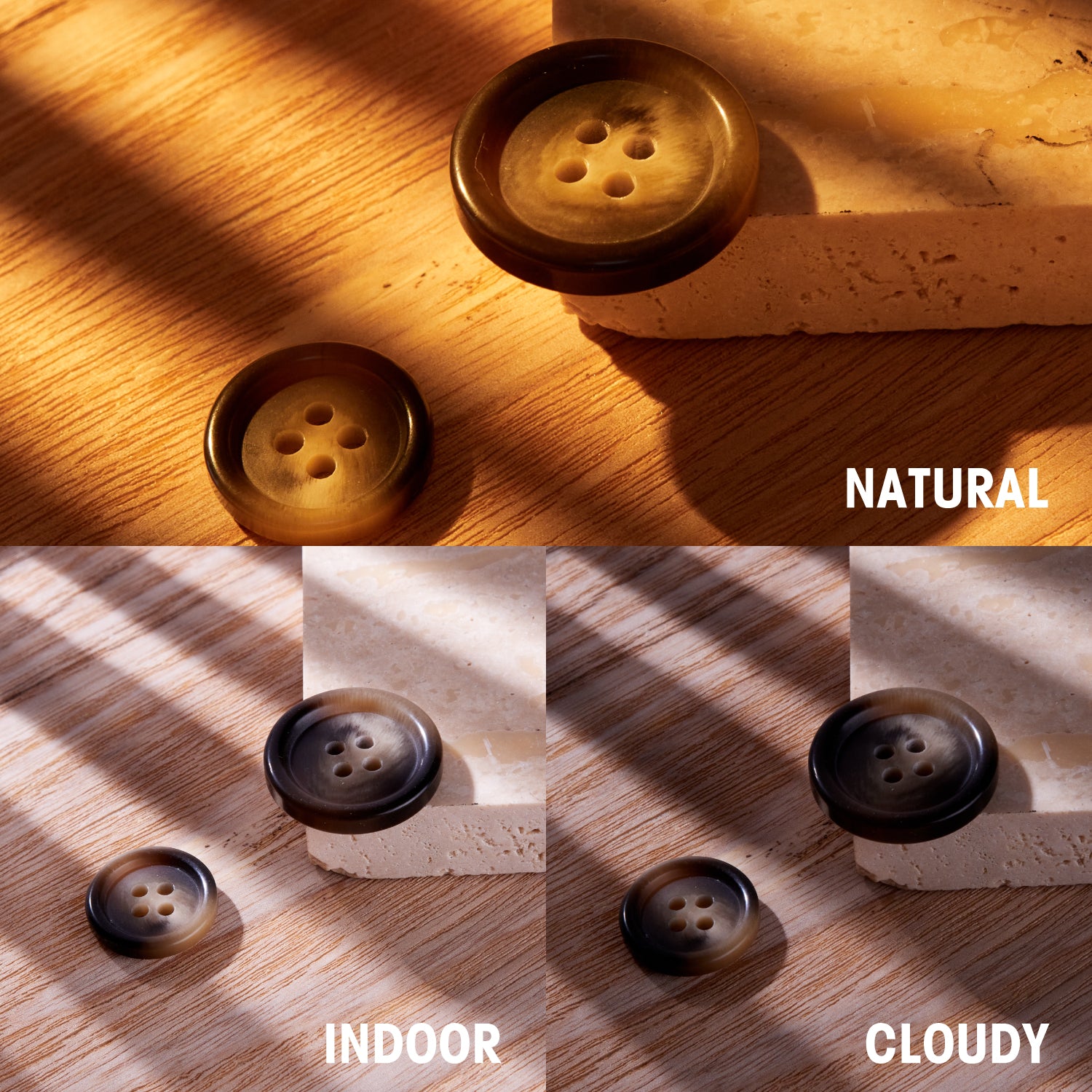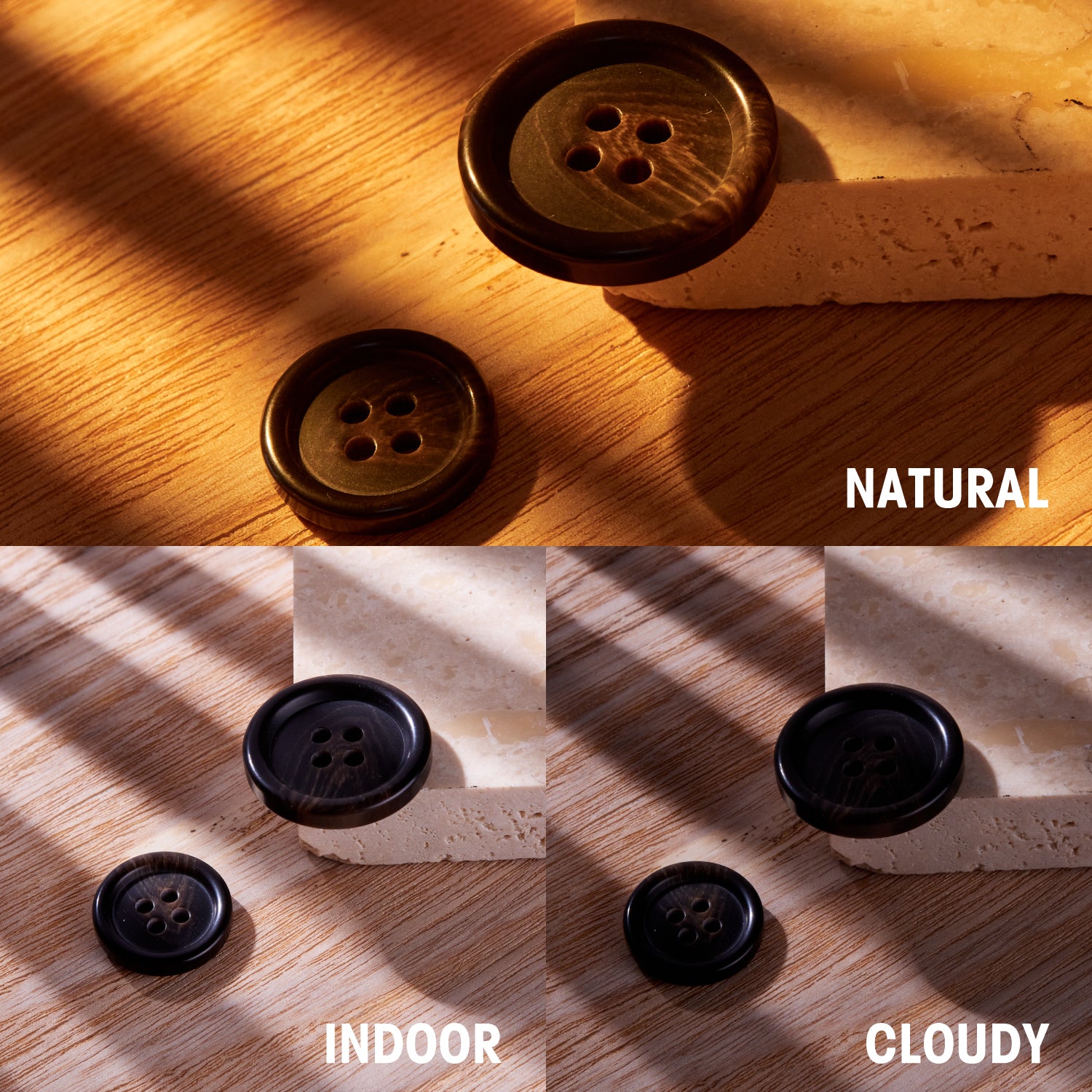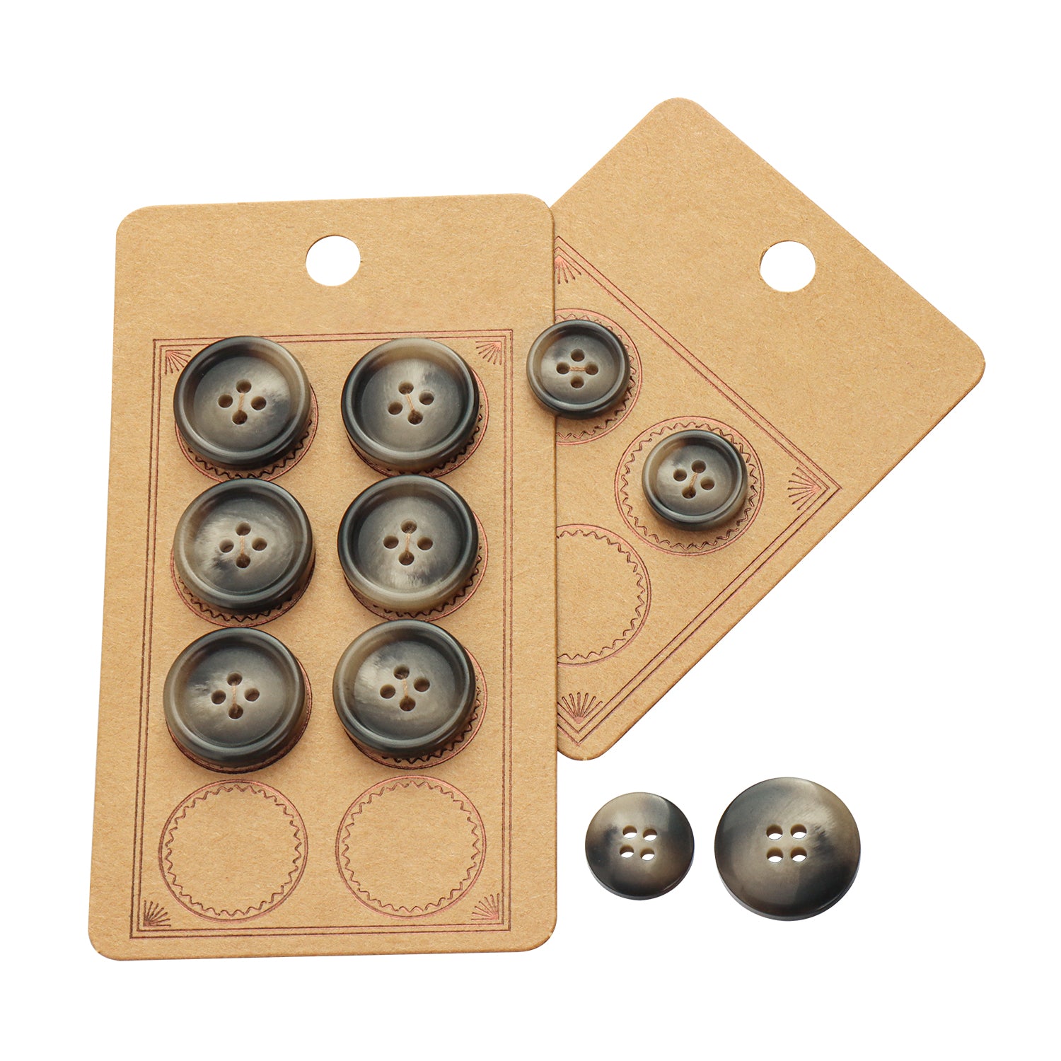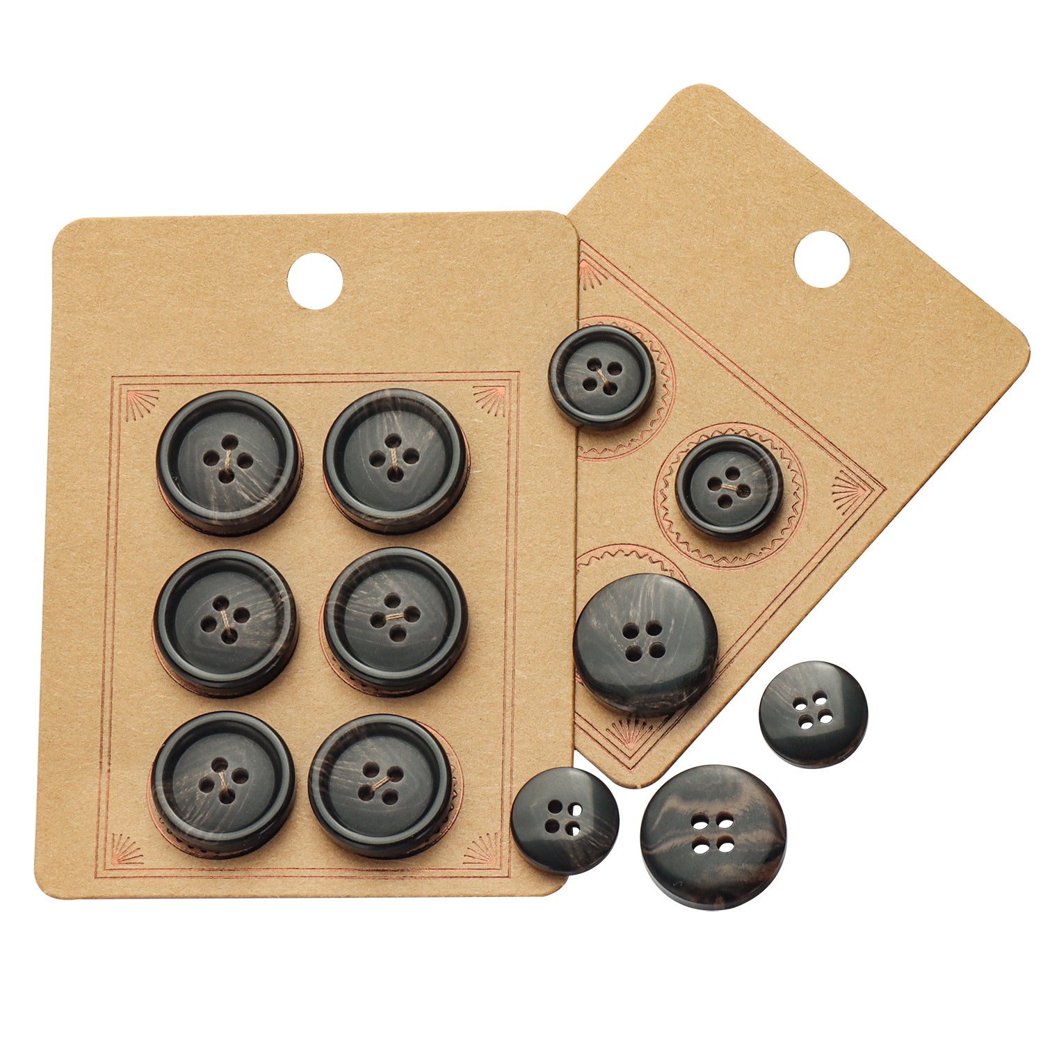 The INOTIONSTYLE Buttons Set is a premium collection of buttons, ideal for enhancing the look of blazers, suits. We offer custom design services, allowing you to personalize these buttons to match your unique style. With a smooth, glossy surface and a luxurious texture, these buttons feature a natural gradient in shades of light brown, dark brown, and black. Their elegant finish and polished edges add a refined touch to any garment, making them a standout feature in both professional and DIY projects.