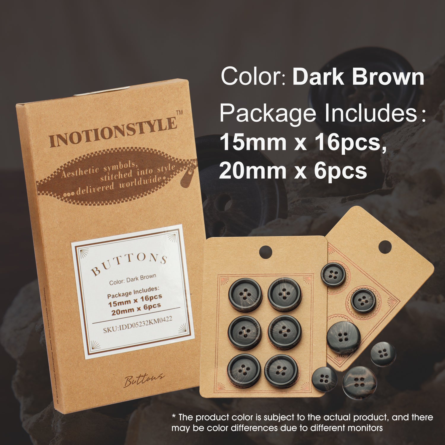 Premium Buttons Set 15/20mm 4-Hole Brown IDD05232K