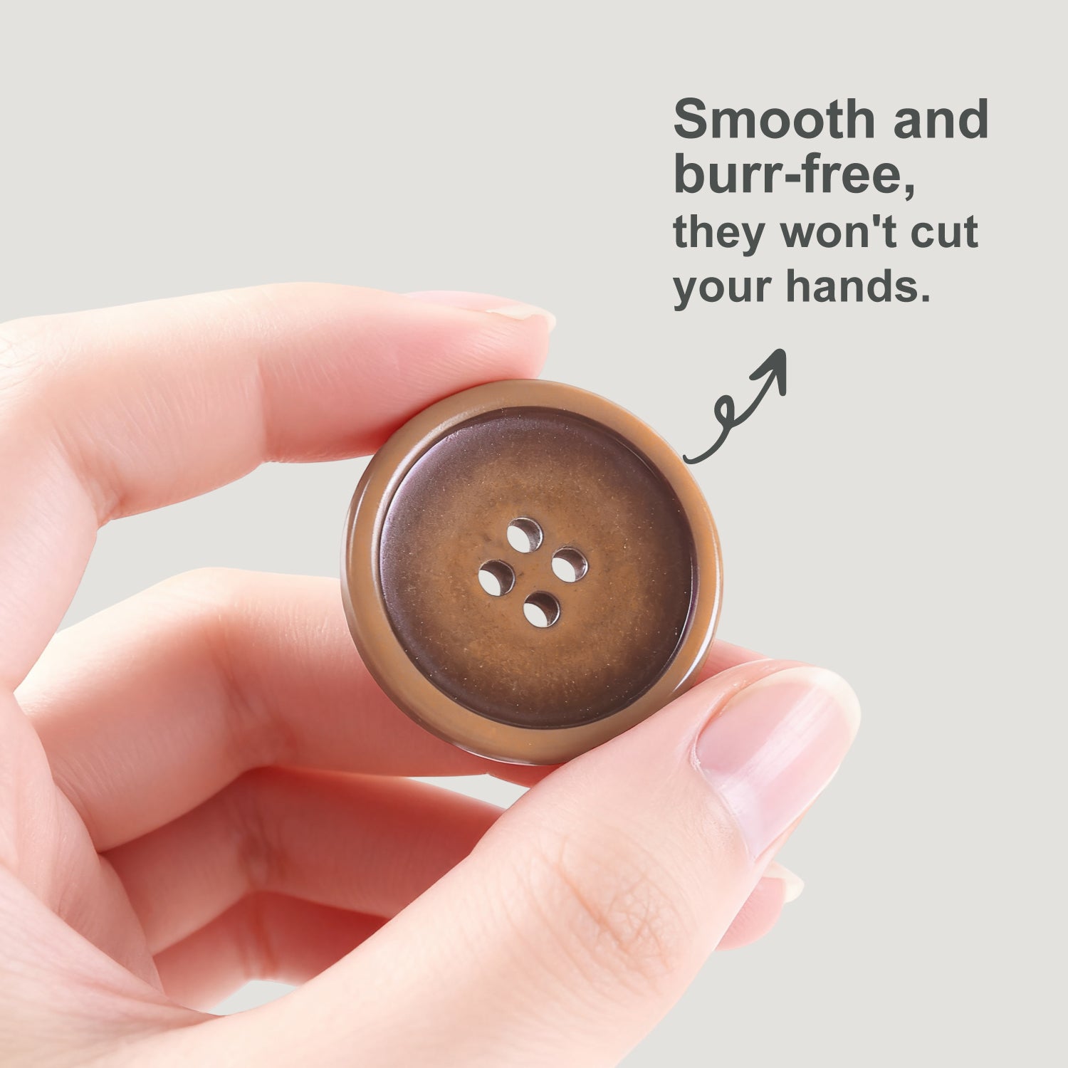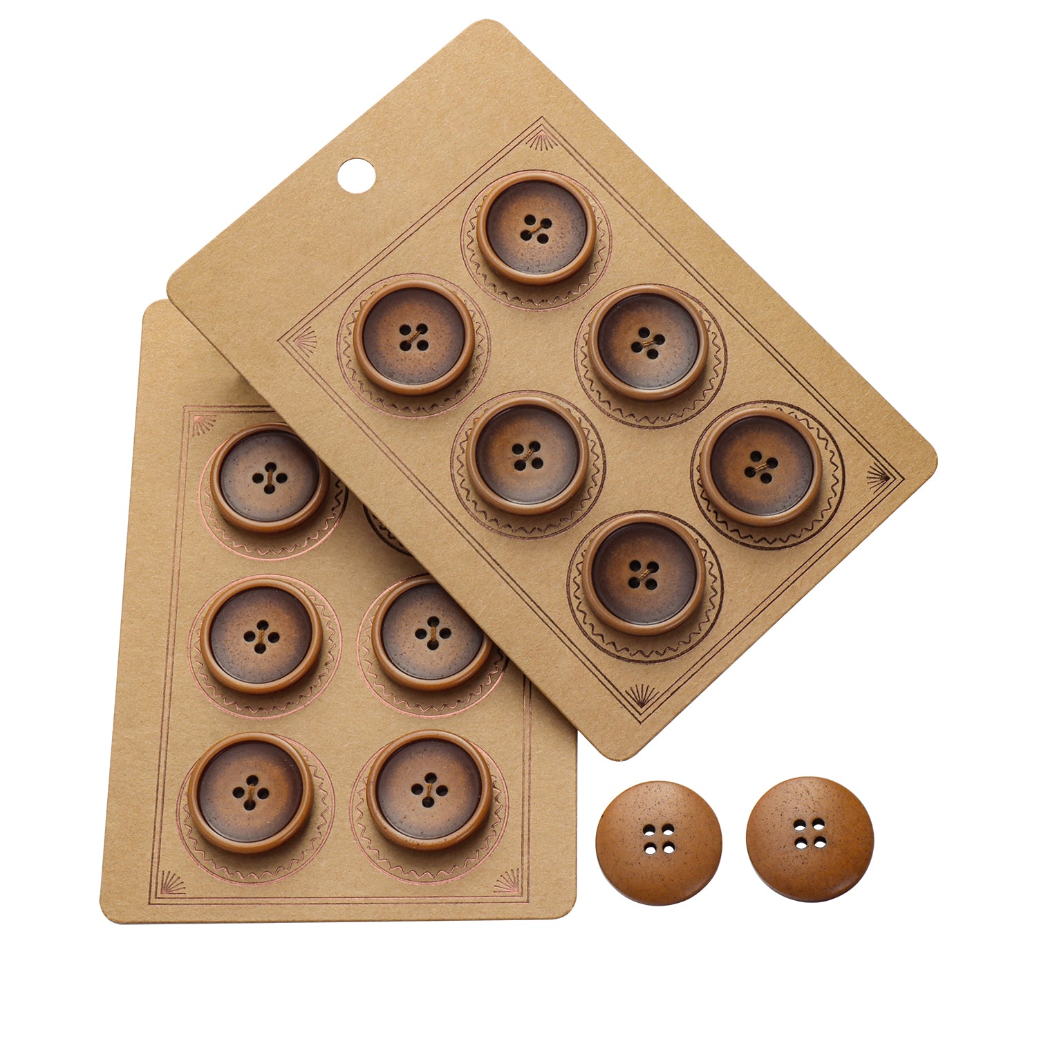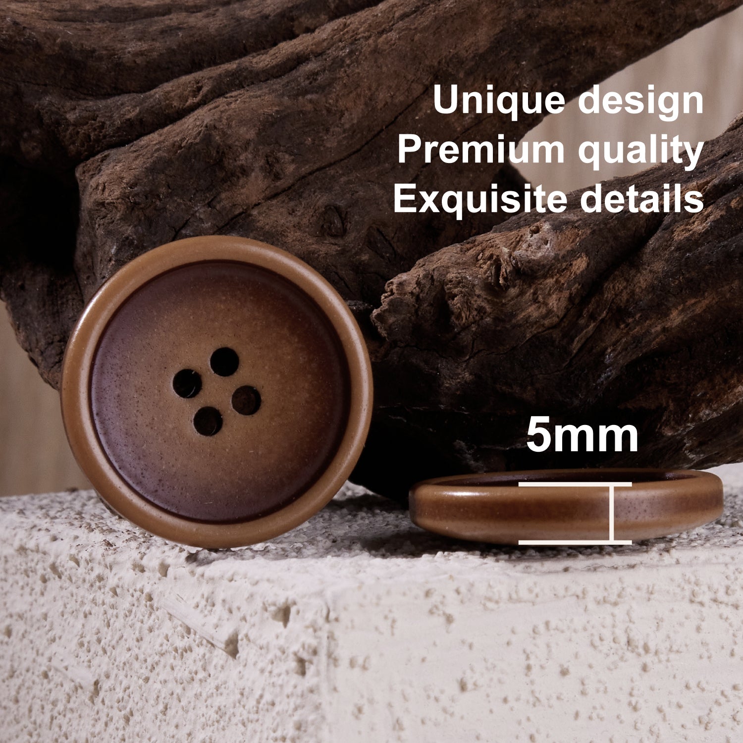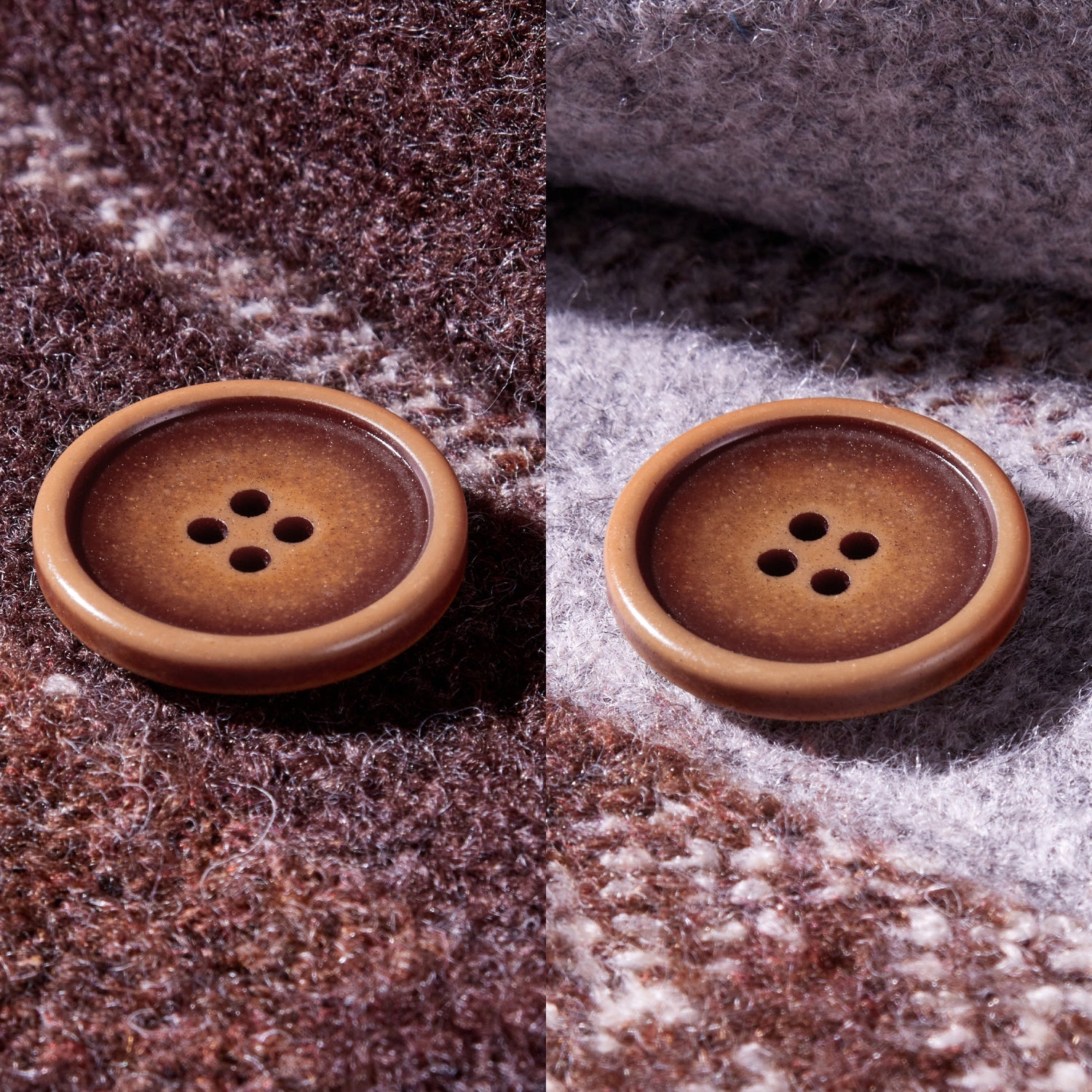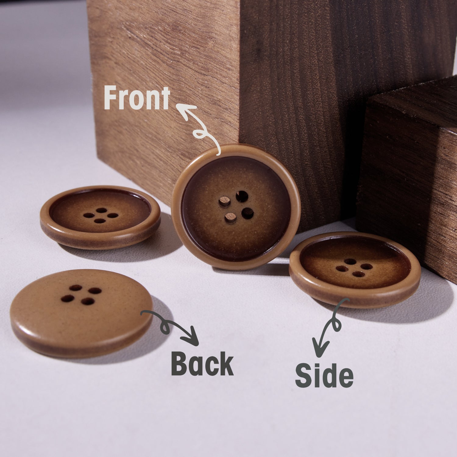 The INOTIONSTYLE buttons offer a vintage-inspired design with a classic four-hole structure that combines both style and functionality. These buttons have a smooth surface with a subtle color gradient, where the edges are darker, gradually fading to a lighter center, creating a refined and elegant effect. The raised edges create a subtle depth, ensuring smooth integration into various garments. Available in beige and brown tones, these buttons offer a stylish look. Made from durable materials, they are lightweight yet sturdy, designed to withstand regular use while maintaining their aesthetic appeal. We also offer customization services to meet specific design needs, ensuring a ideal match for your style.